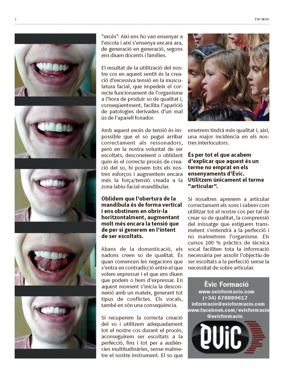 - Calen exercicis pràctics per tal d'anar desenvolupant els diversos aspectes que faran millorar la nostra creació vocal de manera sana.