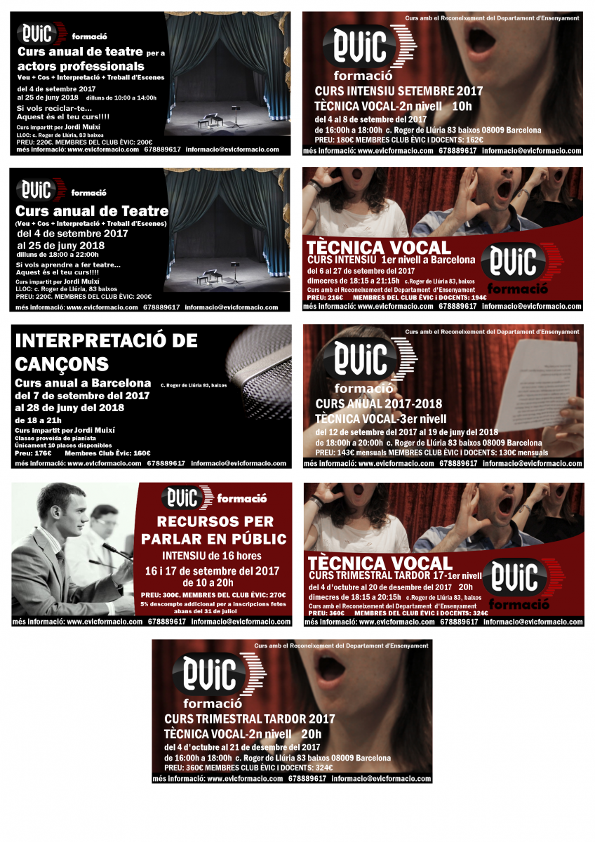 Ja estan obertes les inscripcions del curs trimestral de tècnica vocal de 1er nivell d'hivern. El curs consta d'un total de 22h repartides en 11 sessions de 2h cadascuna.Us recordem que únicament hi ha 10 places disponibles per curs.
