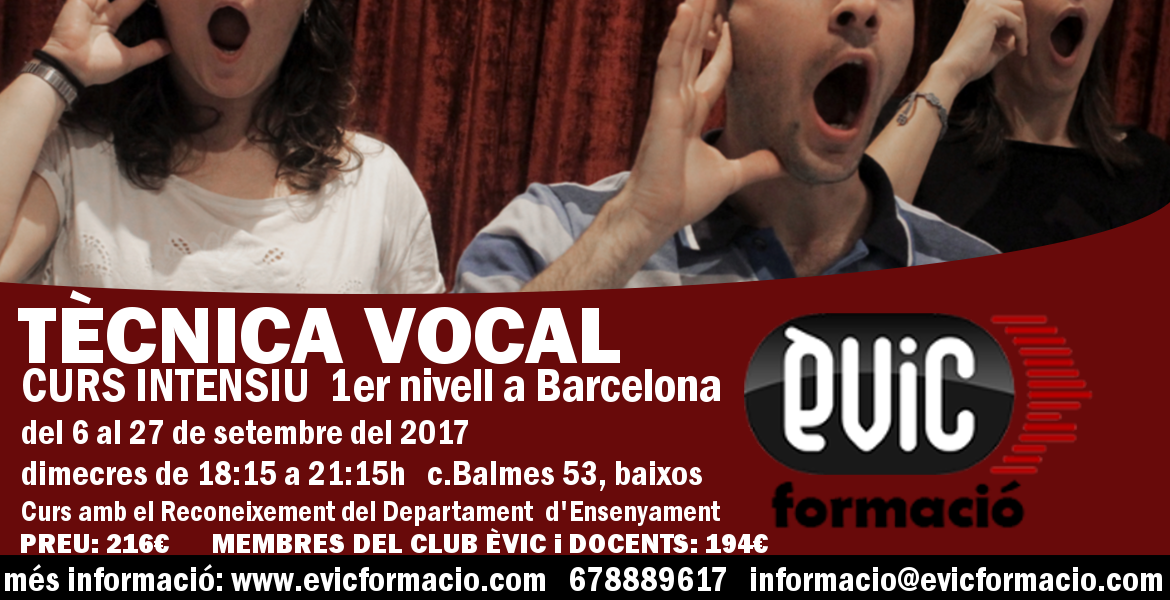 14 jul. NOU CURS INTENSIU DE TÈCNICA VOCAL 1er NIVELL SETEMBRE 2017 Una nova possibilitat de començar bé el curs, tot prevenint els problemes vocals.