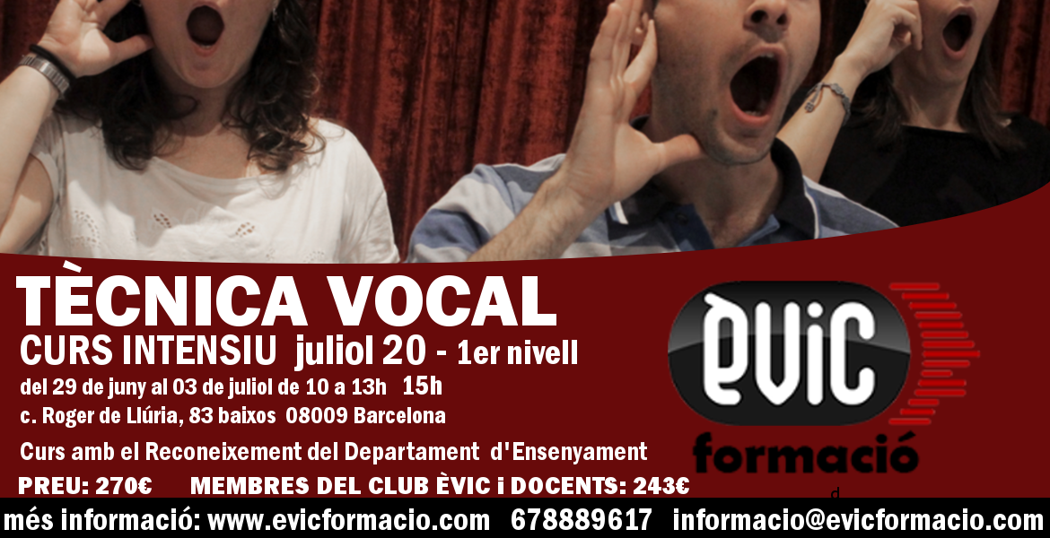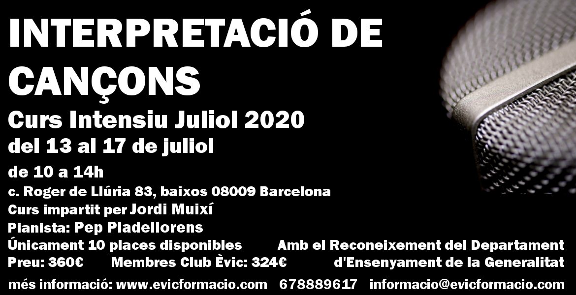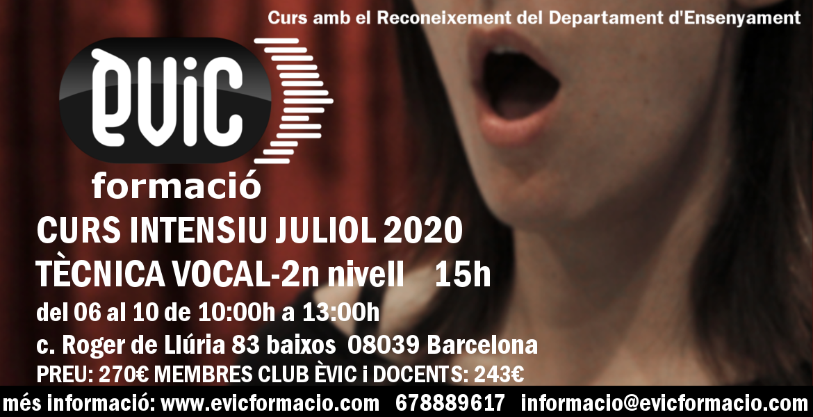 Avui acaba el Curs intensiu de tècnica vocal de 2n nivell. El curs s'ha dut a terme per videoconferència i ha estat tot un èxit. La setmana vinent tindrà lloc el curs intensiu d'interpretació de cançons: